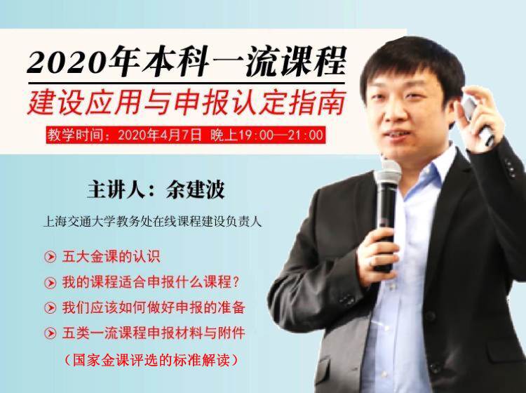 为了迎接2020年一流课程申报,特组织教师们参加线上培训,帮助老师从一流课程的理念、认识、设计、应用与申报等内容方面做好准备。现将有关事项通知如下: