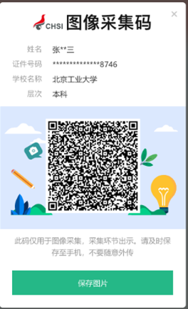 三、本次图像采集将使用采集码录入方式。此次所有参加拍摄的同学,请提前三天根据附件1《学信网图像采集码获取途径》提前获取本人采集码。务必下载保存好采集码,拍摄时出示采集码并扫码进行信息录入后方可进行拍摄。